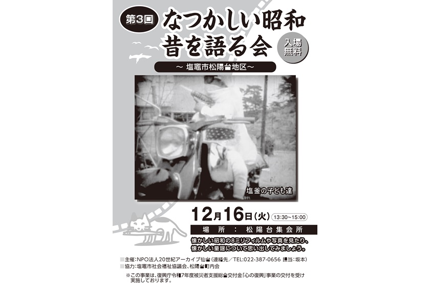 塩釜市松陽台地区において、第3回「昔を語る会」を開催いたします。